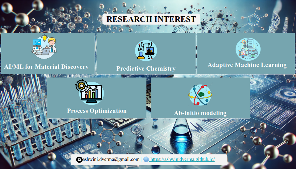 My research lies at the intersection of materials science and artificial intelligence. I focus on developing data-driven computational frameworks to accelerate materials discovery and enable process optimization. I am particularly interested in leveraging data-driven methods to accelerate technology development, particularly in clean energy sectors like hydrogen, fuel cells, solar and batteries.